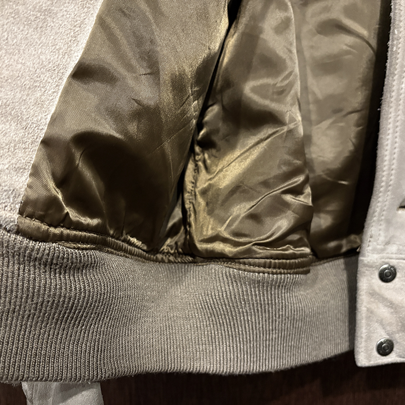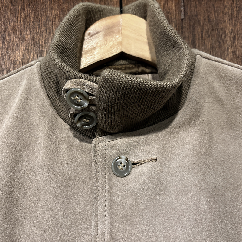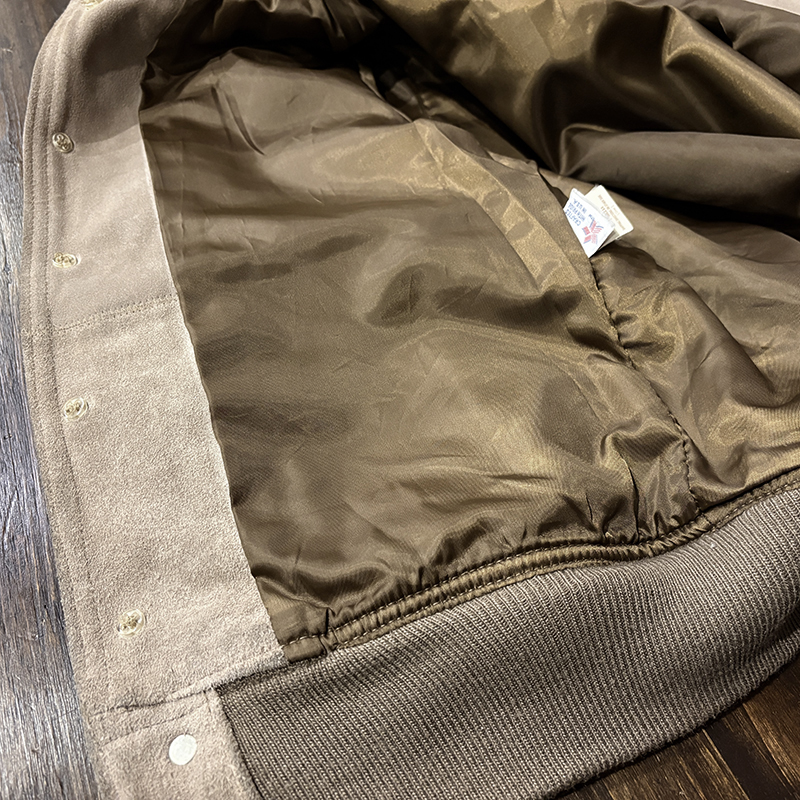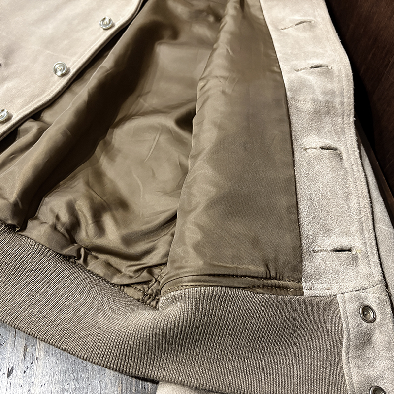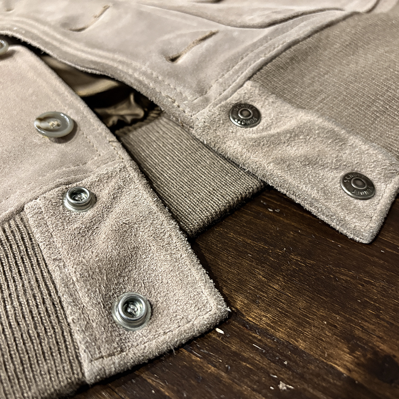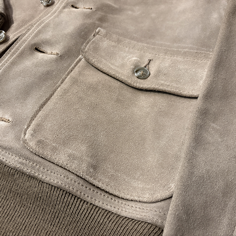 カラーは落ちついたスエード特有のサンドブラウンにリブ周りはモカブラウンのツートーン、スエードレザーは起毛などのアタリによって良い陰影のエイジングが望める独特の風合いとなっています。