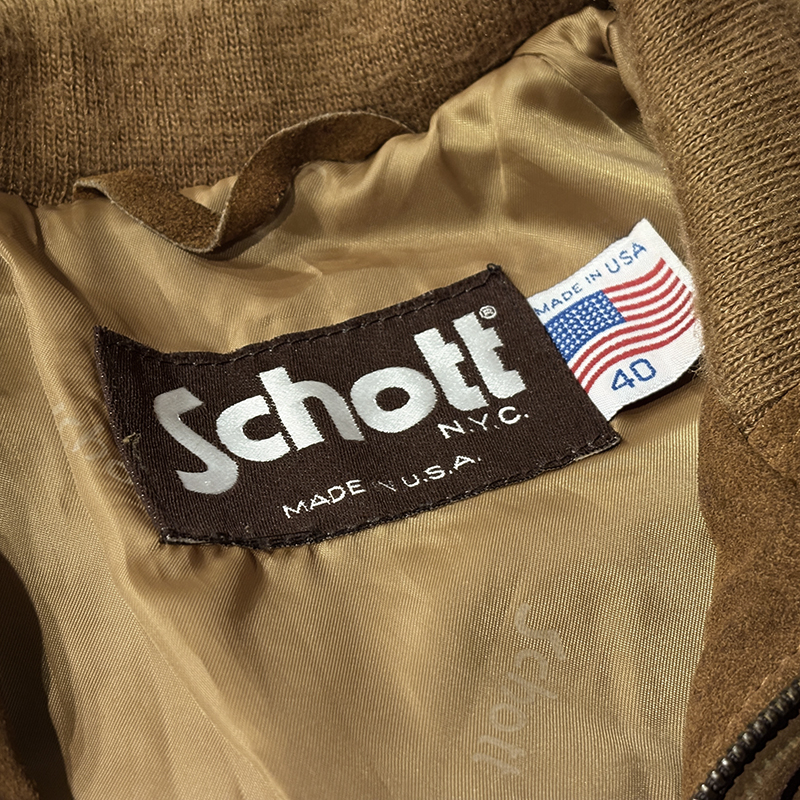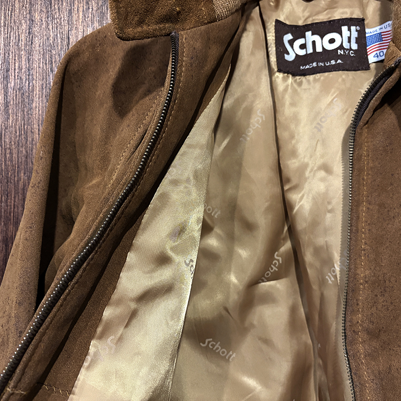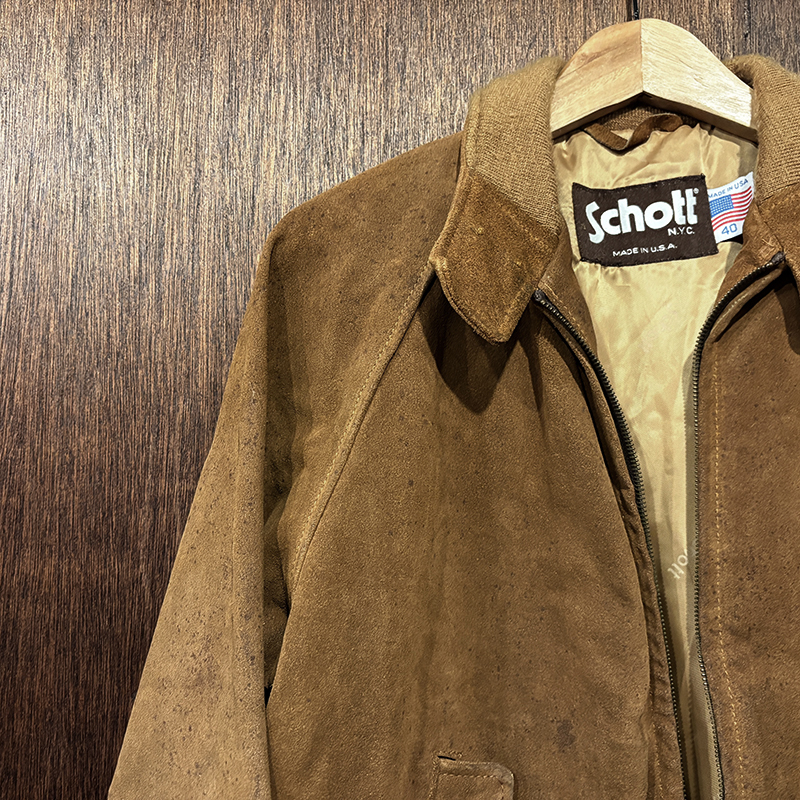 Schott Suede Leather Harrington Jacket Brown Old Rare Model 40 Made in USA ショット スエード レザー ハリントン ジャケット スポーツジャケット キャメル ブラウン オールド ビンテージ 希少モデル グッドコンディション のご紹介です。