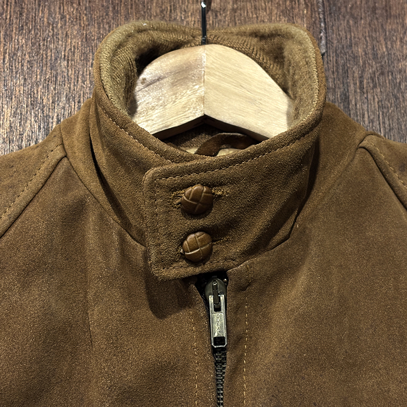 ショットの極めて稀少なハリントンジャケットスタイルのヘビースエードジャケット、デザインが王道のスイングトップスタイルですが肉厚で重厚なレザーブランドらしいハイクオリティな作りが同社らしい一着です、是非ご検討ください。