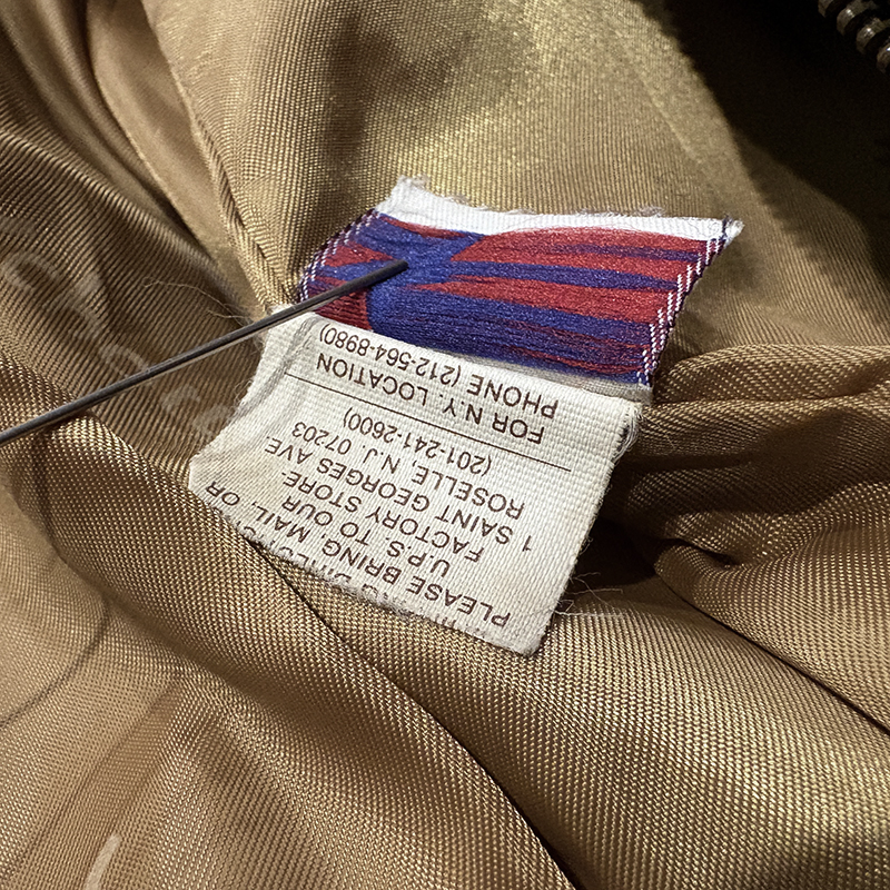 フロントはIDEALブラスジッパーでボタンもクルミデザインの同社としては珍しいクラシカルなボタン、リブも肉厚なマスタードがかったトーンの明るいブラウンで、インナーもキャメルカラーの光沢あるSchottロゴが印字されたデザインで各部のディテールも作り込みが良いものとなっています。