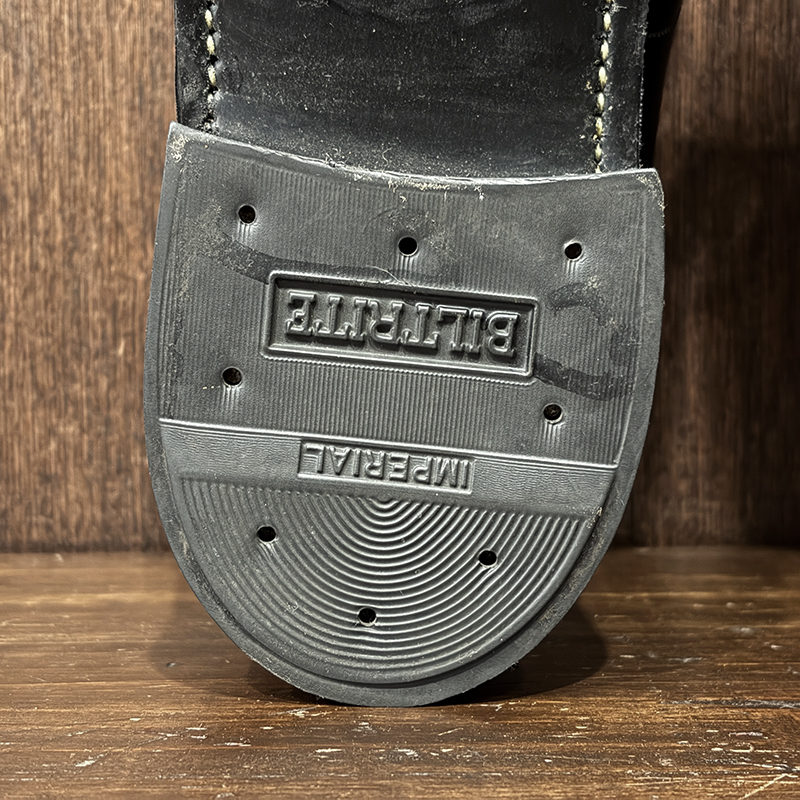ソールも実績の高いグッドイヤーウェルト製法で、ヒールラバーも当時のBILTRITEのインペリアルラバーヒールとなっており、非常に堅牢でグリップが効き、雨天時でも全く問題なく履くことができ、ラバー材の減りも遅いため末長く履き込むことが可能です。