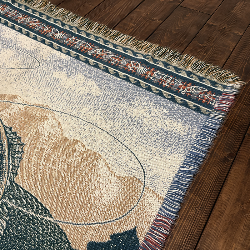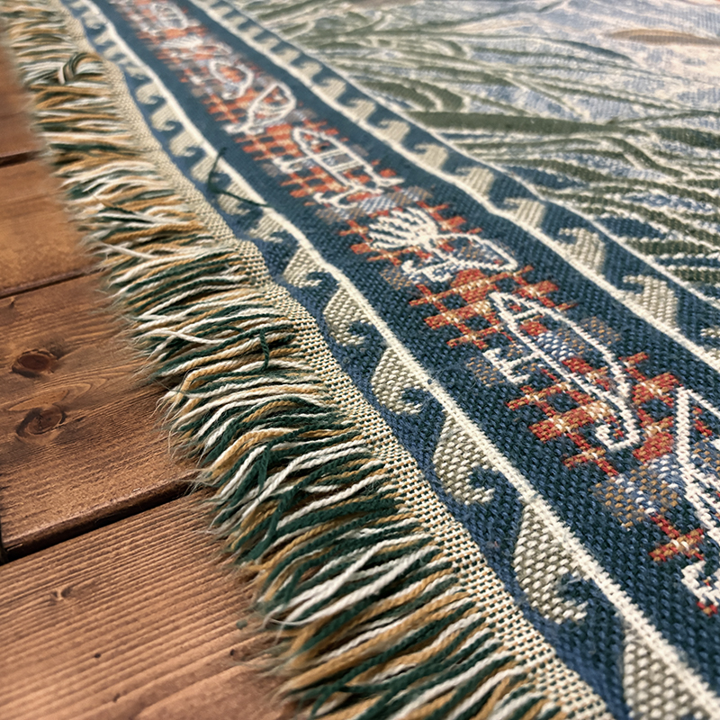 一般的なブランケットサイズで、ソファー等のインテリアに合わせたり、ベッドカバー、アウトドアでのキャンプなどの際にもクラシカルな雰囲気を加えてくれます。