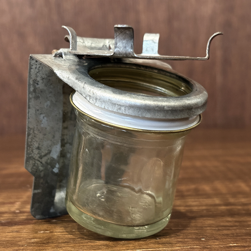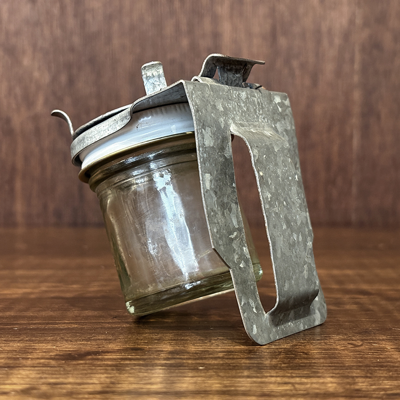 Vintage Fishing Metal Waist Mount Portable Bait Glass Bottle Case Tool Mint ビンテージ フィッシング メタル ウェスト ベルト取付 グラスボトル型 餌入れ 餌釣り用 オールド オリジナル ミントコンディション のご紹介です。