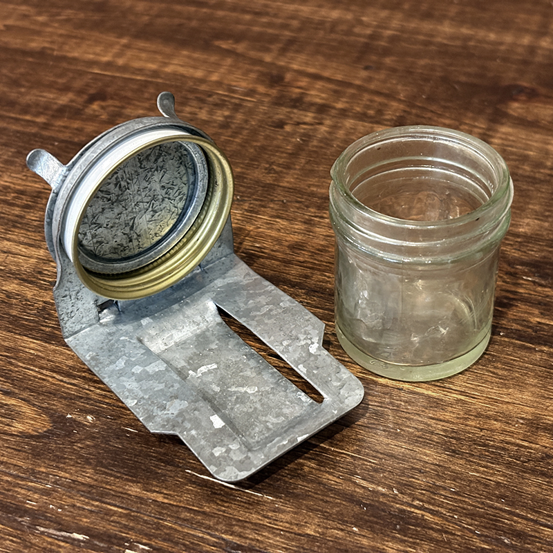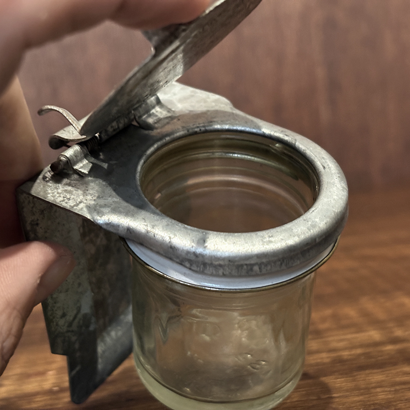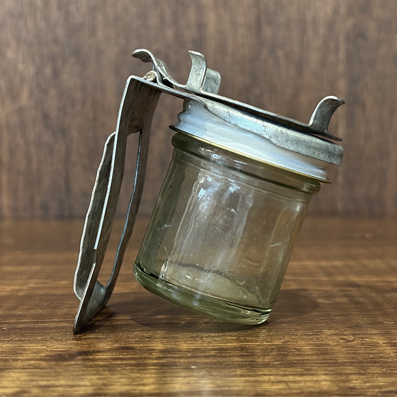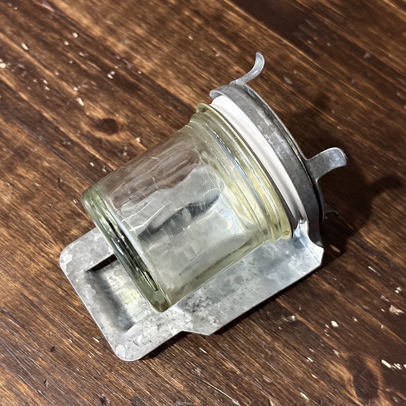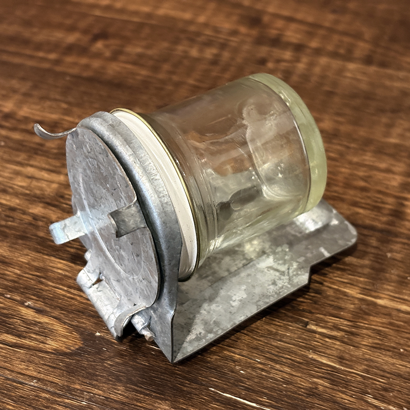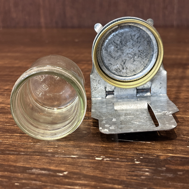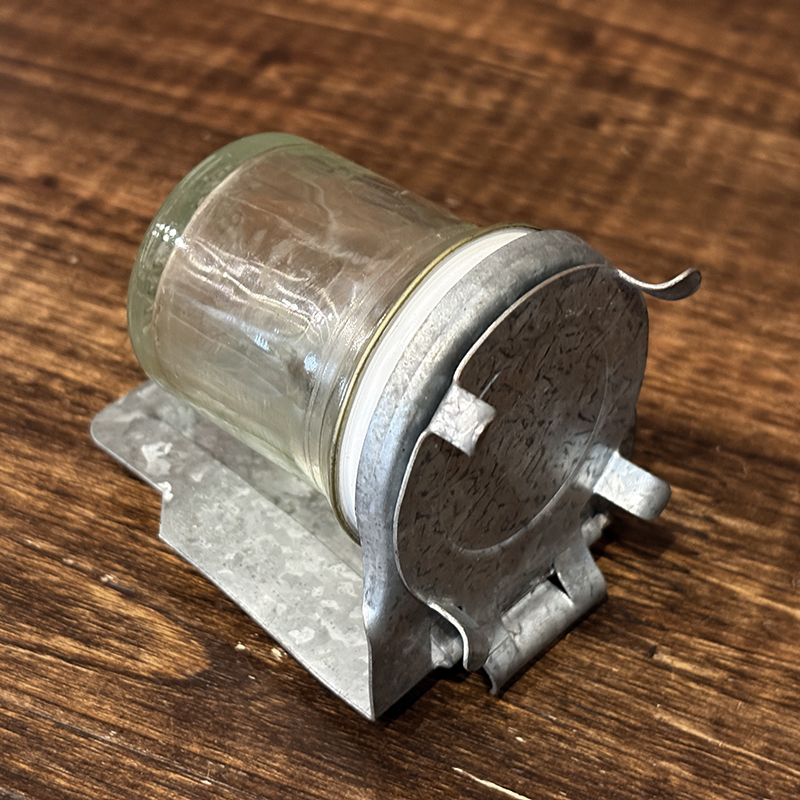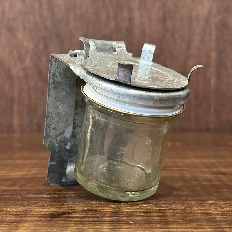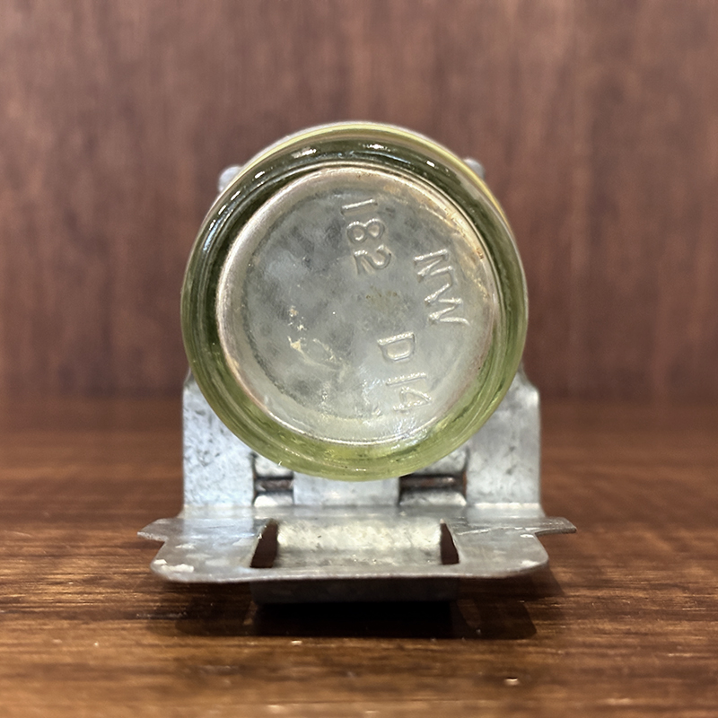 ビンテージ オールドのメタルフレームとラウンドグラスボトル構造のベイトケースツール、当時らしい素朴な設計とそのデザインがなんとも良いクラシカルなベイトストックです、餌釣りはもちろん、小型のルアーやフライ・バスバグなどをこういったケースに忍ばせたりと使い方は工夫次第です、是非ご検討ください。