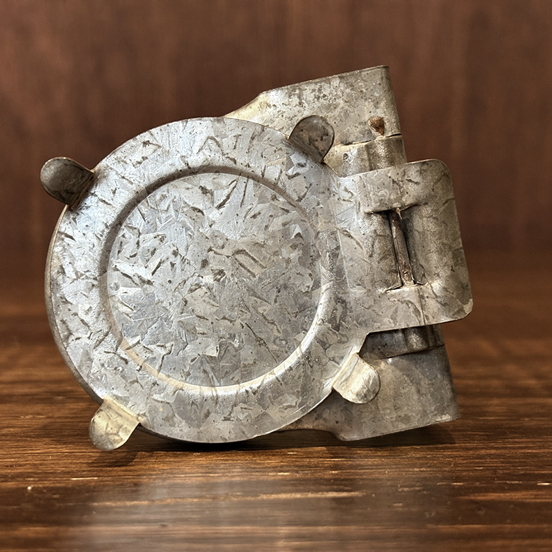 メーカーロゴなどの刻印はフレームにはありませんが、作り自体は堅牢でしっかりとしたメタルプレス加工となっており、各部のディテールにも当時らしい成形プレスの工程によるつくりが確認できるクラシックな道具といった印象です。