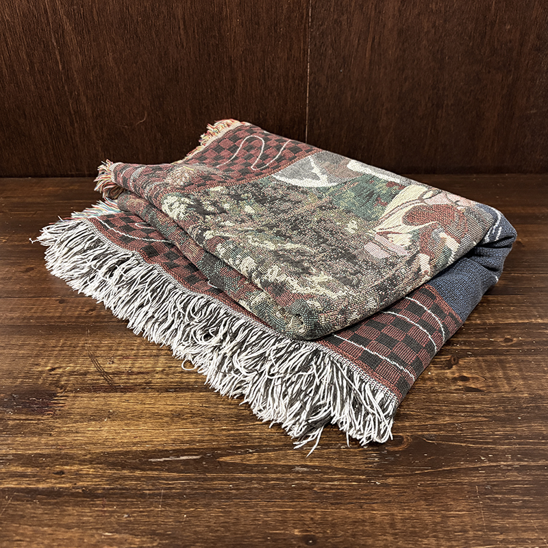 一般的なブランケットサイズで、ソファー等のインテリアに合わせたり、ベッドカバー、アウトドアでのキャンプなどの際にもクラシカルな雰囲気を加えてくれます。