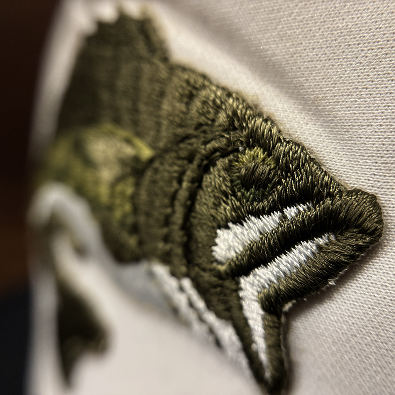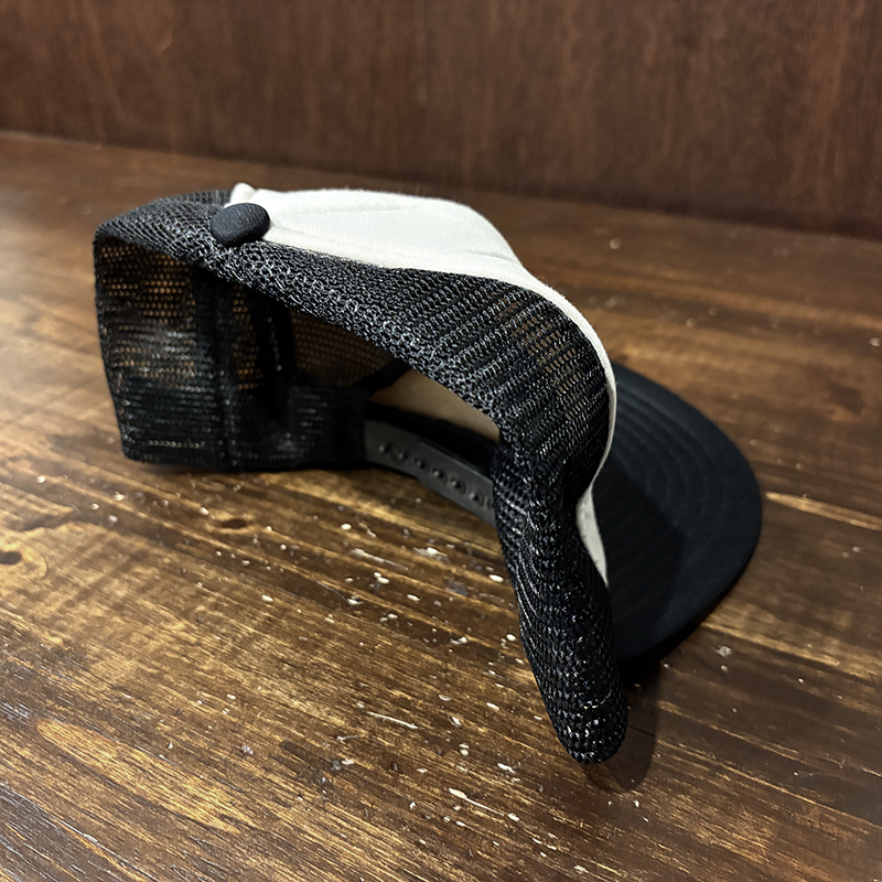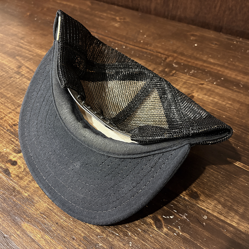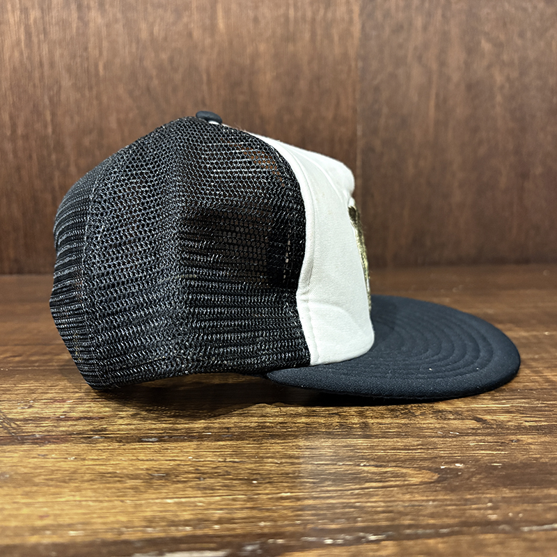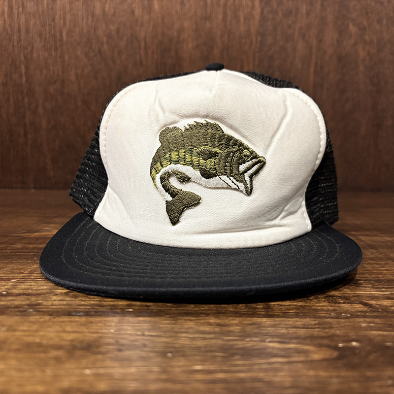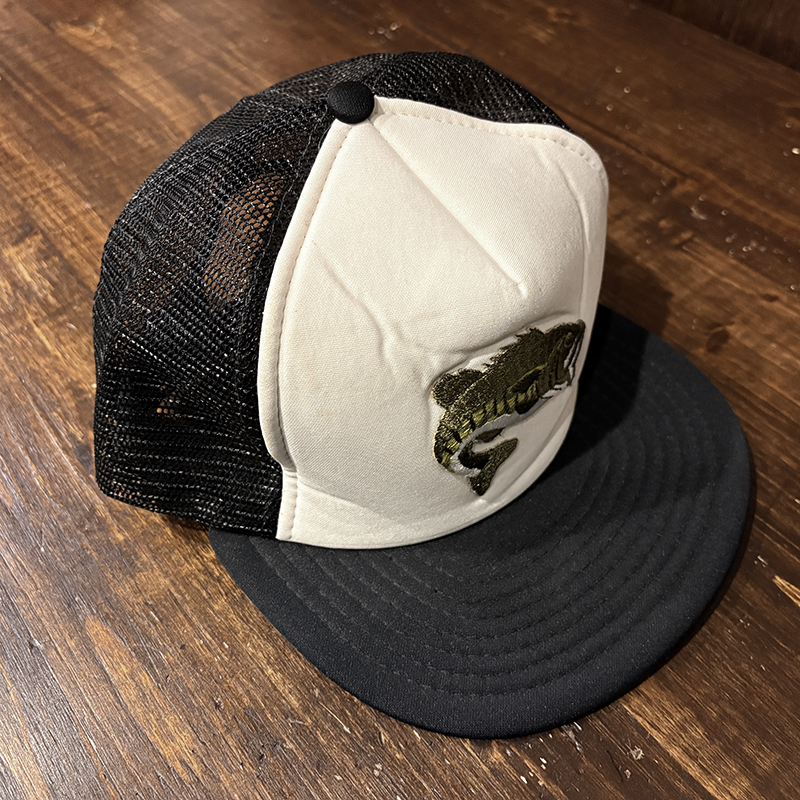 フロントパネルに当時らしい良い雰囲気のジャンピングバスの刺繍が施されたオールドフィッシングキャップ、パネル構成もスタンダードなフロントパネルとメッシュのボディでカラーリングもブラック×ホワイトで合わせやすいキャップです、あらゆる釣行シーンやタウンユースにも良いアクセントになりそうです、是非ご検討ください。
