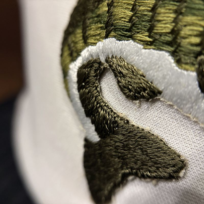 フロントパネルのバスの刺繍は当時らしい横振りの荒めのストローク運針が見られるボリューミーな仕上がりとなっており、立体感のあるレーヨン糸の独特の光沢感が良い雰囲気となっています。